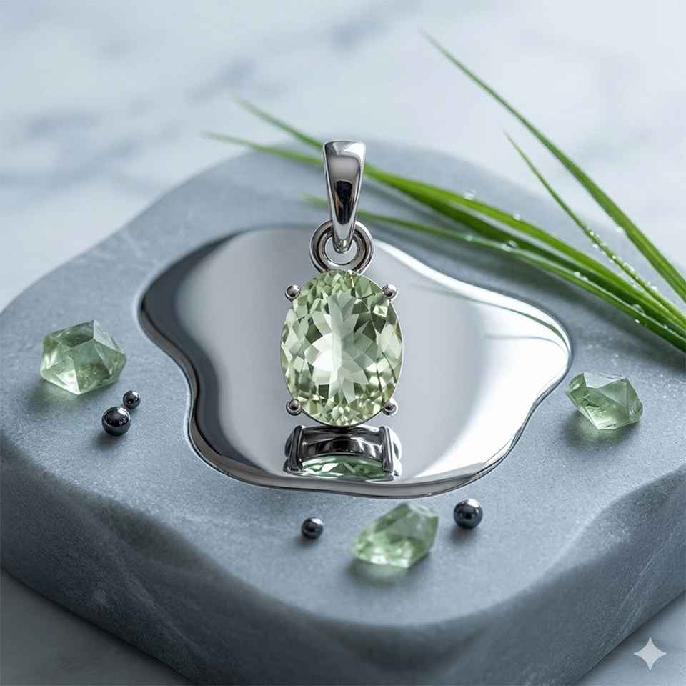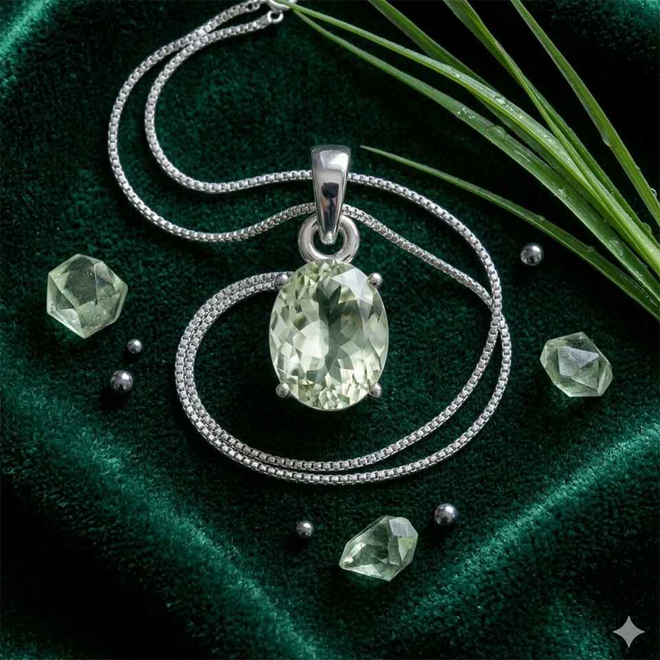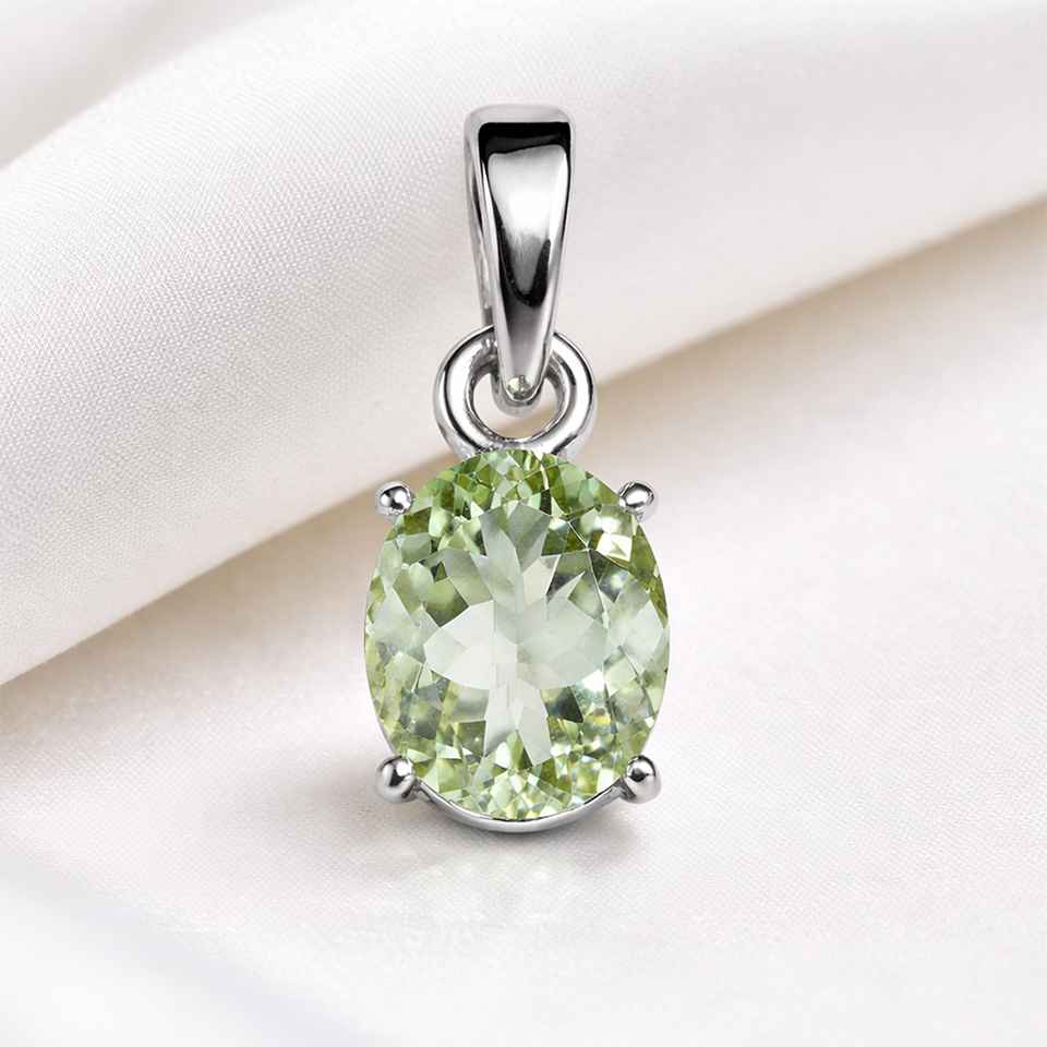 Fresh and sophisticated, this 925 sterling silver green amethyst pendant features a beautifully cut oval gemstone in soft mint green tones, offering a calm and elegant aesthetic. Also known as prasiolite, green amethyst is admired for its subtle color and clarity, making it a unique addition to any jewelry collection. The faceted stone reflects light delicately, while the sterling silver setting enhances its natural beauty and ensures durability and everyday comfort. Designed in a classic solitaire style, this pendant is perfect for layering or wearing alone as a refined statement piece. Suitable for both casual and formal wear, it adds a soft, modern elegance to any outfit. Whether chosen for its serene appearance or as a thoughtful gift, this green amethyst pendant embodies understated luxury and timeless charm.