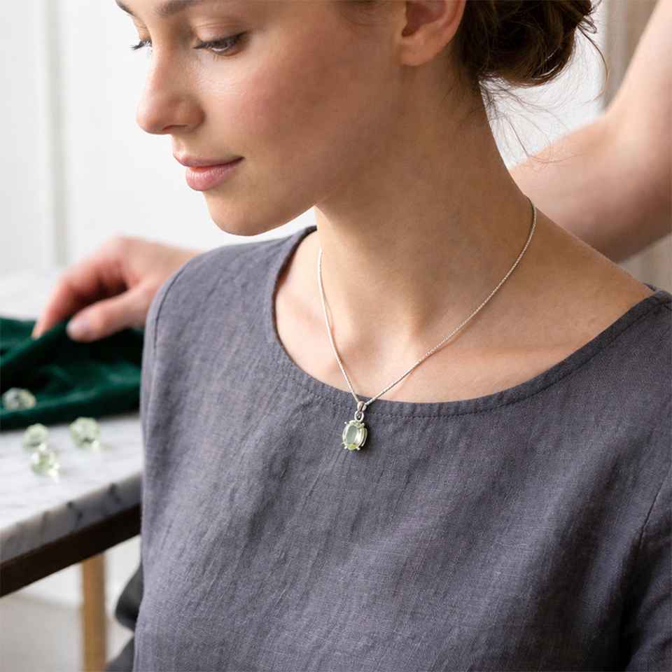 Green Amethyst Gemstone Pendant in 925 Sterling Silver Classic Oval Necklace Charm