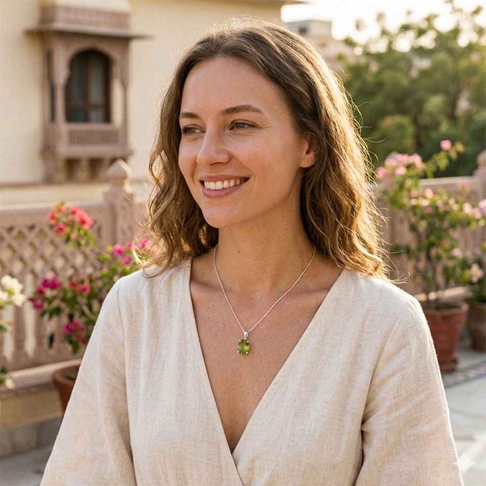 • Vibrant Peridot Gemstone: Features a radiant peridot gemstone with fresh green hues, associated with positivity, renewal, and known as the August birthstone—adding a lively pop of color to your look.