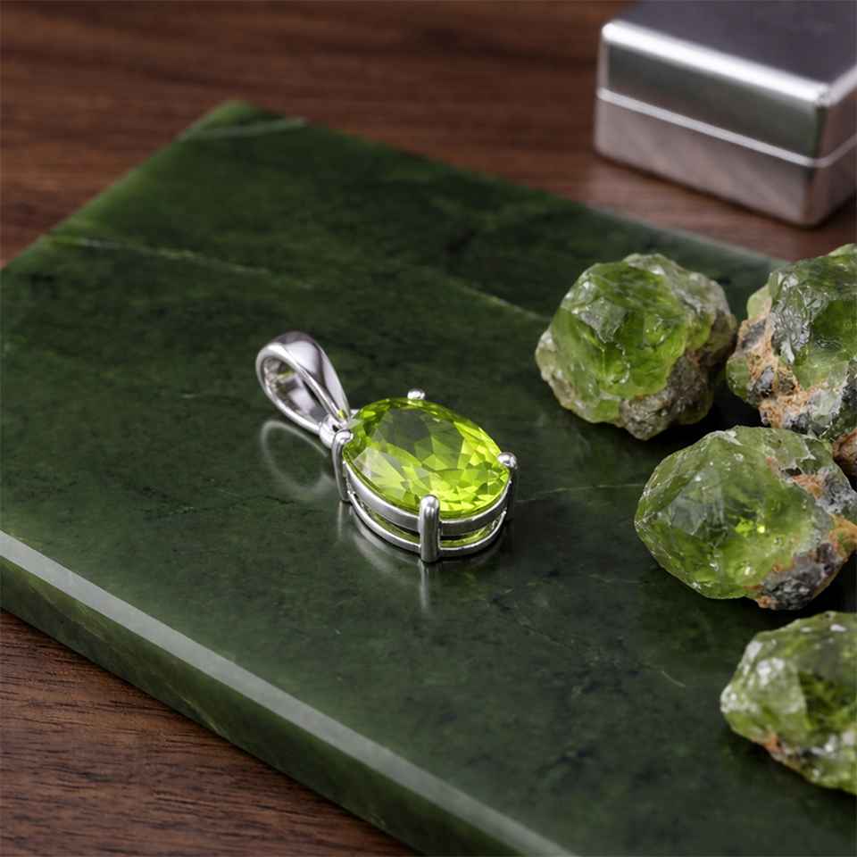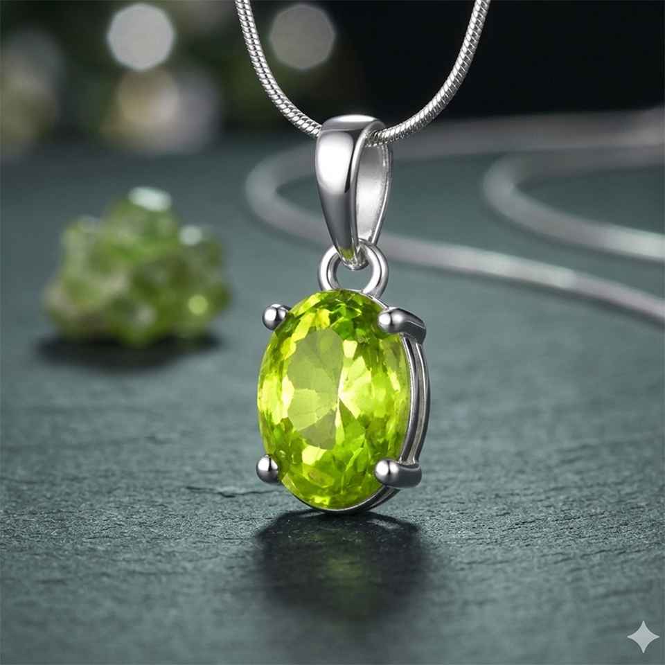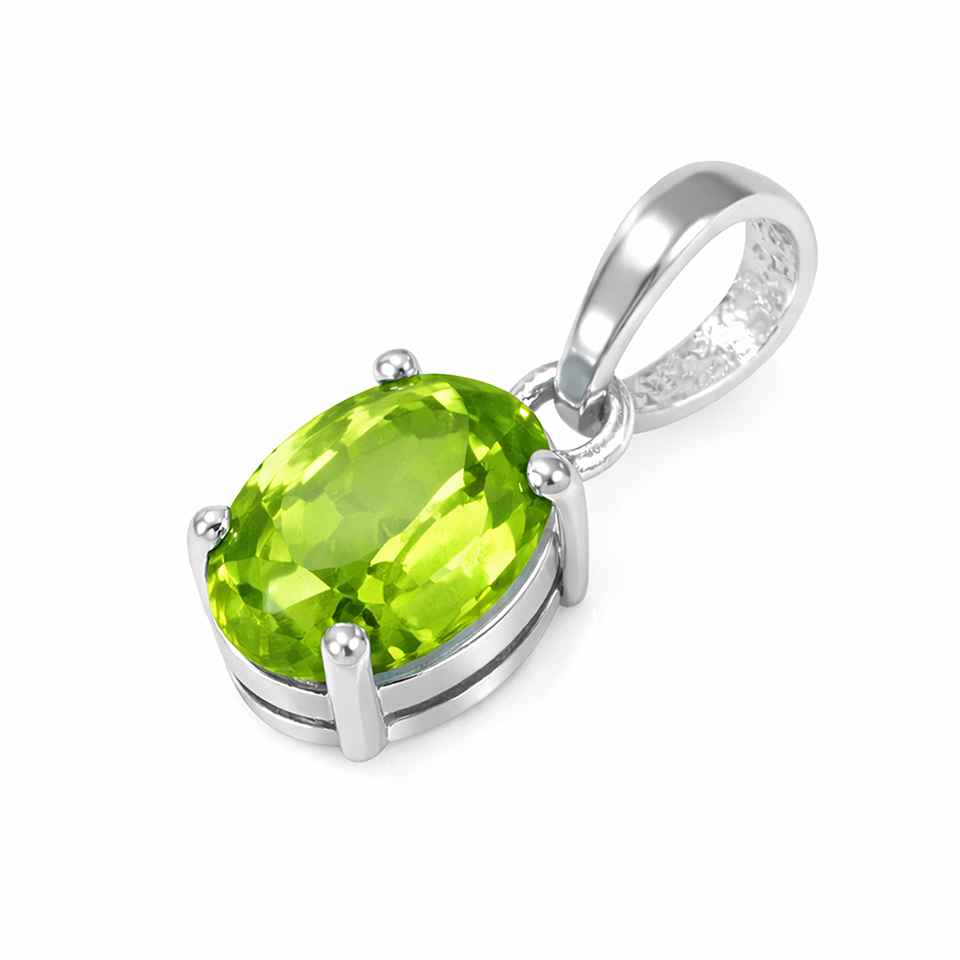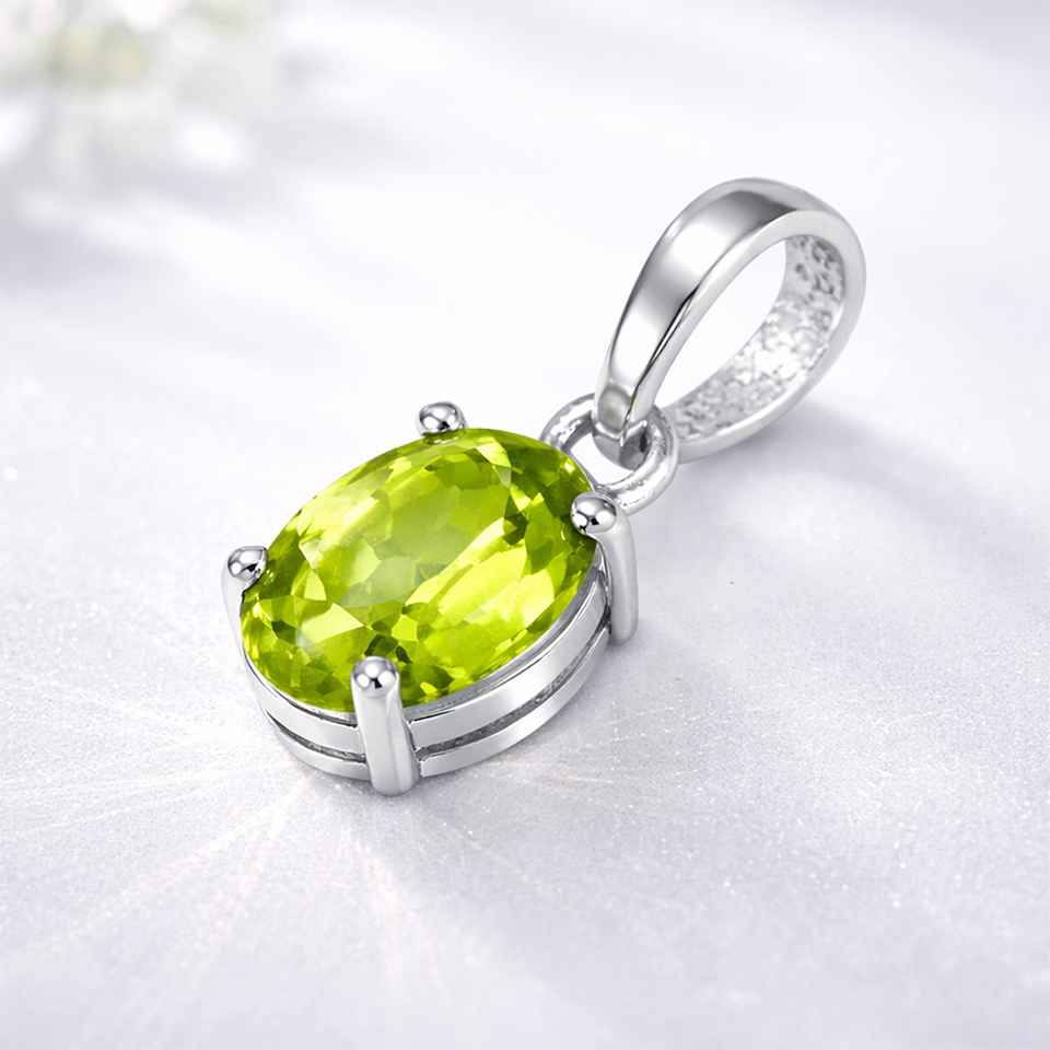 Green Peridot Gemstone Pendant in 925 Sterling Silver Classic Oval Necklace Charm