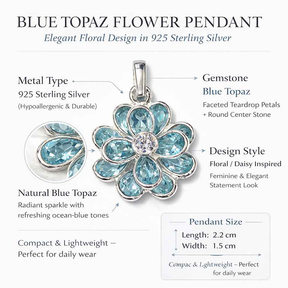 - Refreshing Gift & Versatile Charm: Carefully packaged for gifting, this blue topaz pendant is perfect for birthdays and celebrations. Its light blue tones and balanced floral design bring a fresh elegance to both casual wear and formal occasions.