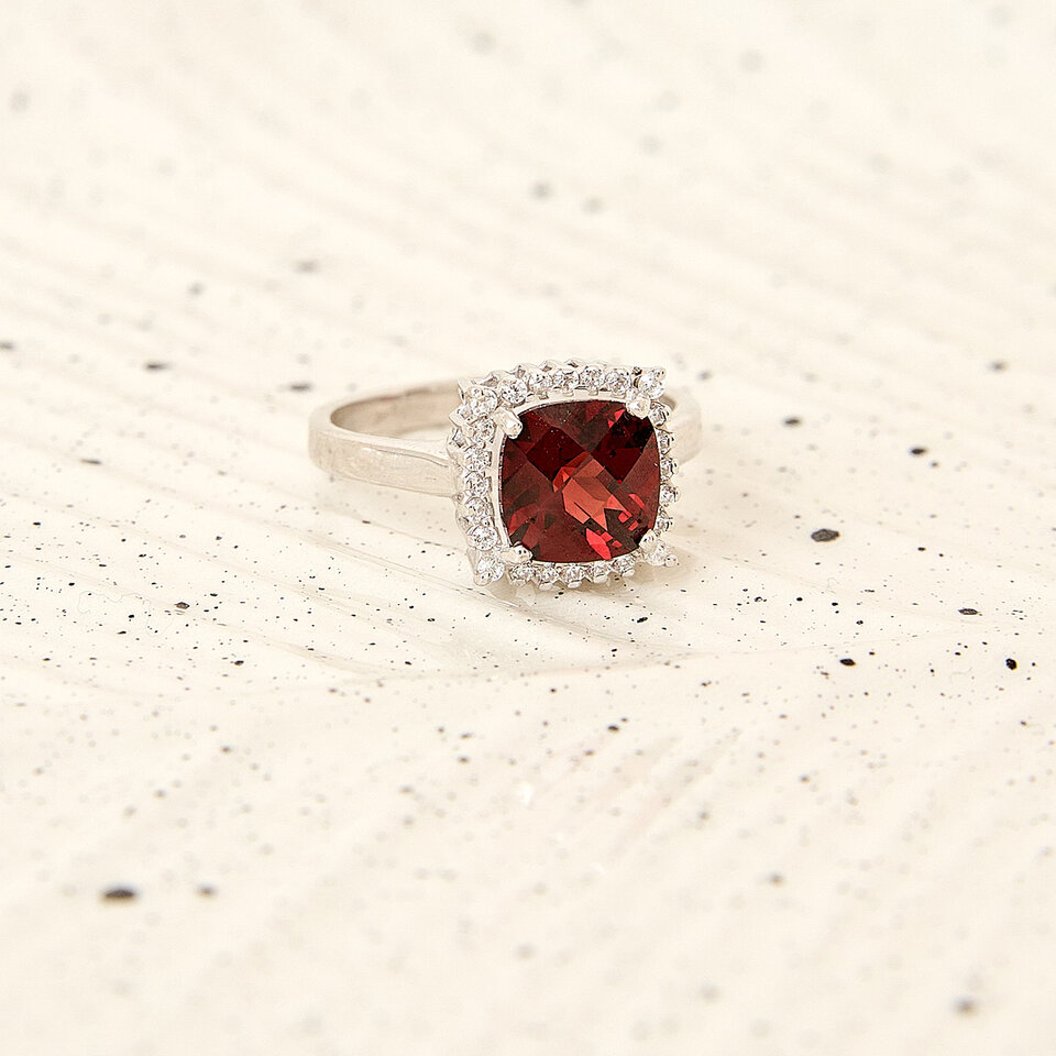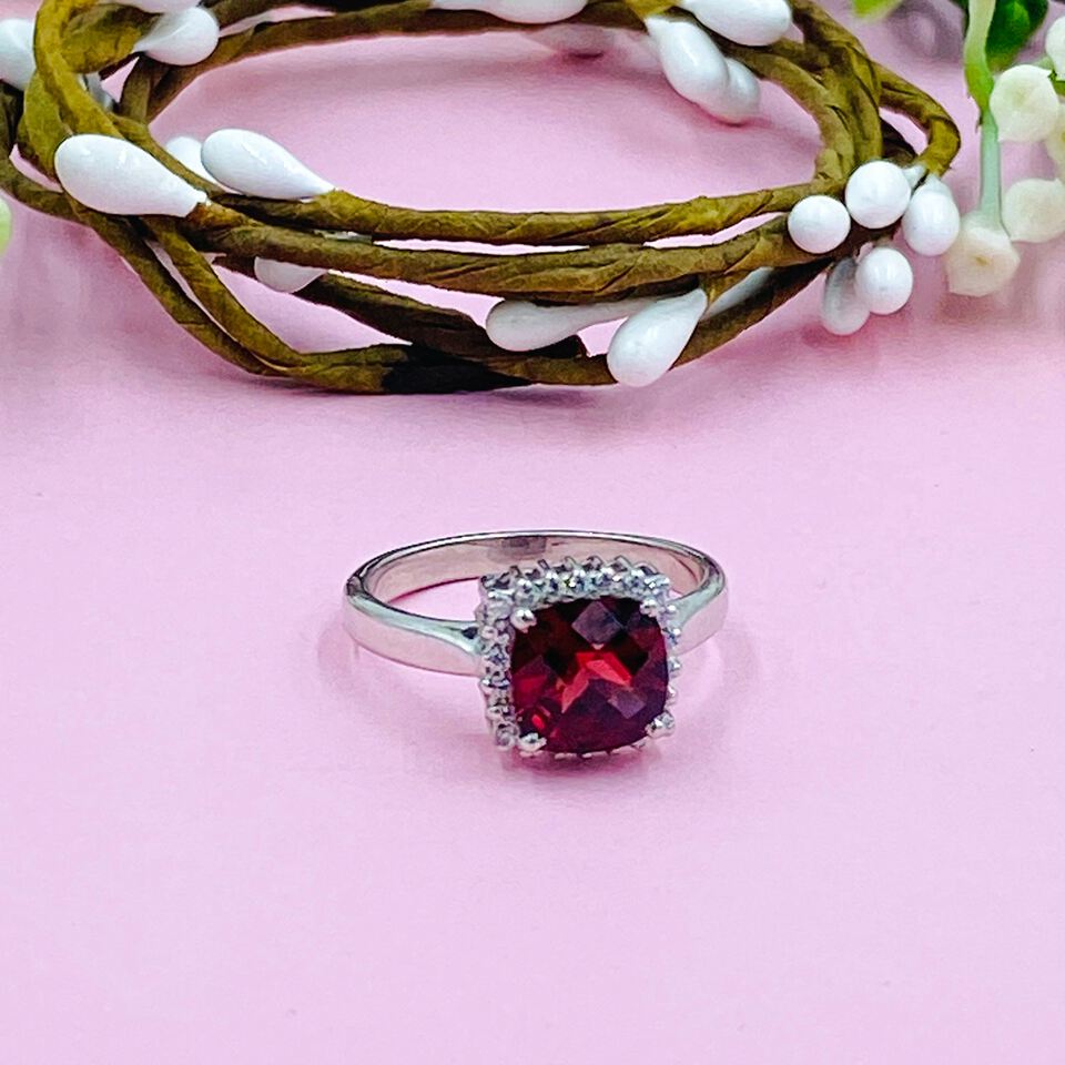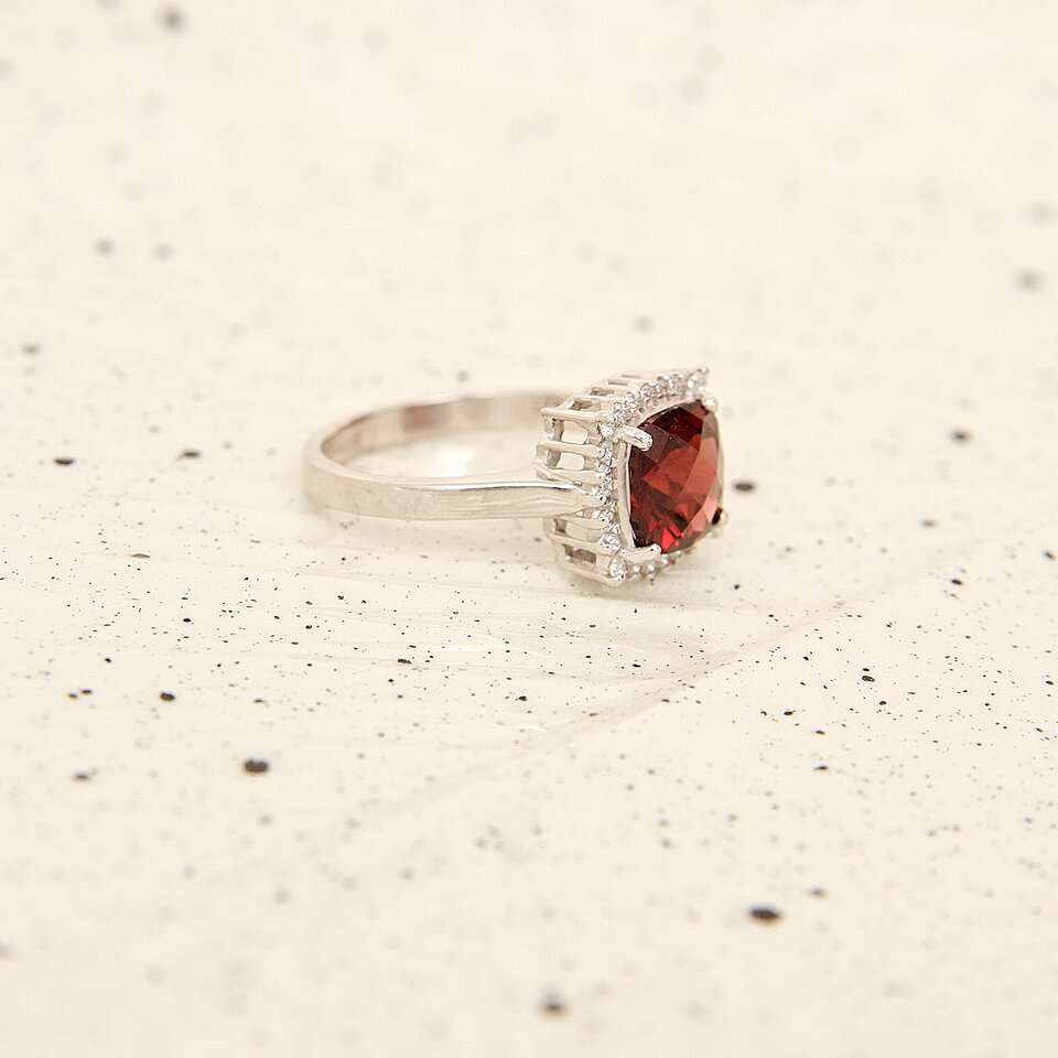 - Made from premium 925 sterling silver, this elegant halo-patterned ring is designed for women who appreciate sophistication. It features a beautiful garnet gemstone, the birthstone for January. Weighing just 4 grams, it offers a comfortable, luxurious feel, making it a perfect addition to any jewelry collection.
