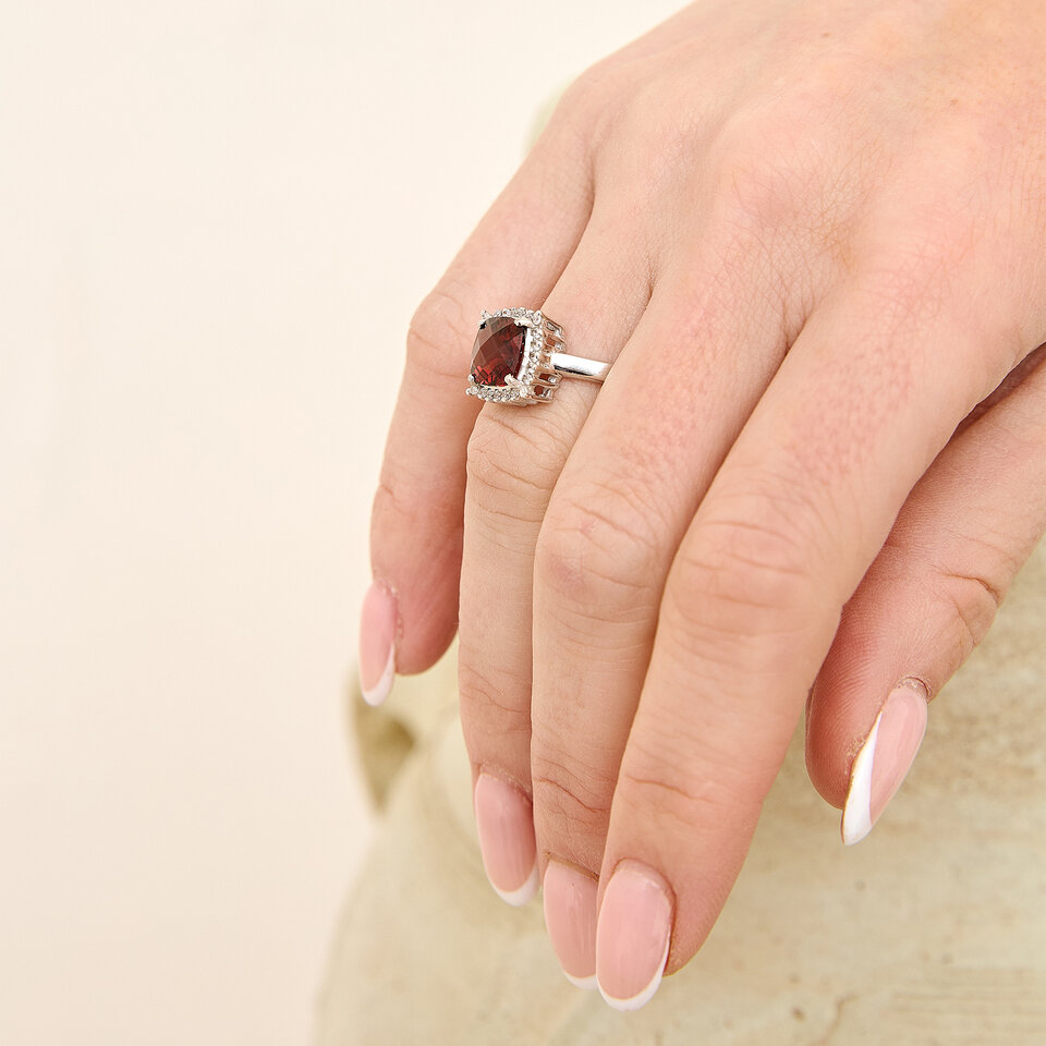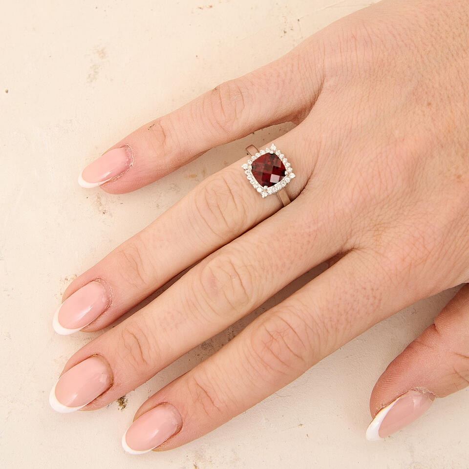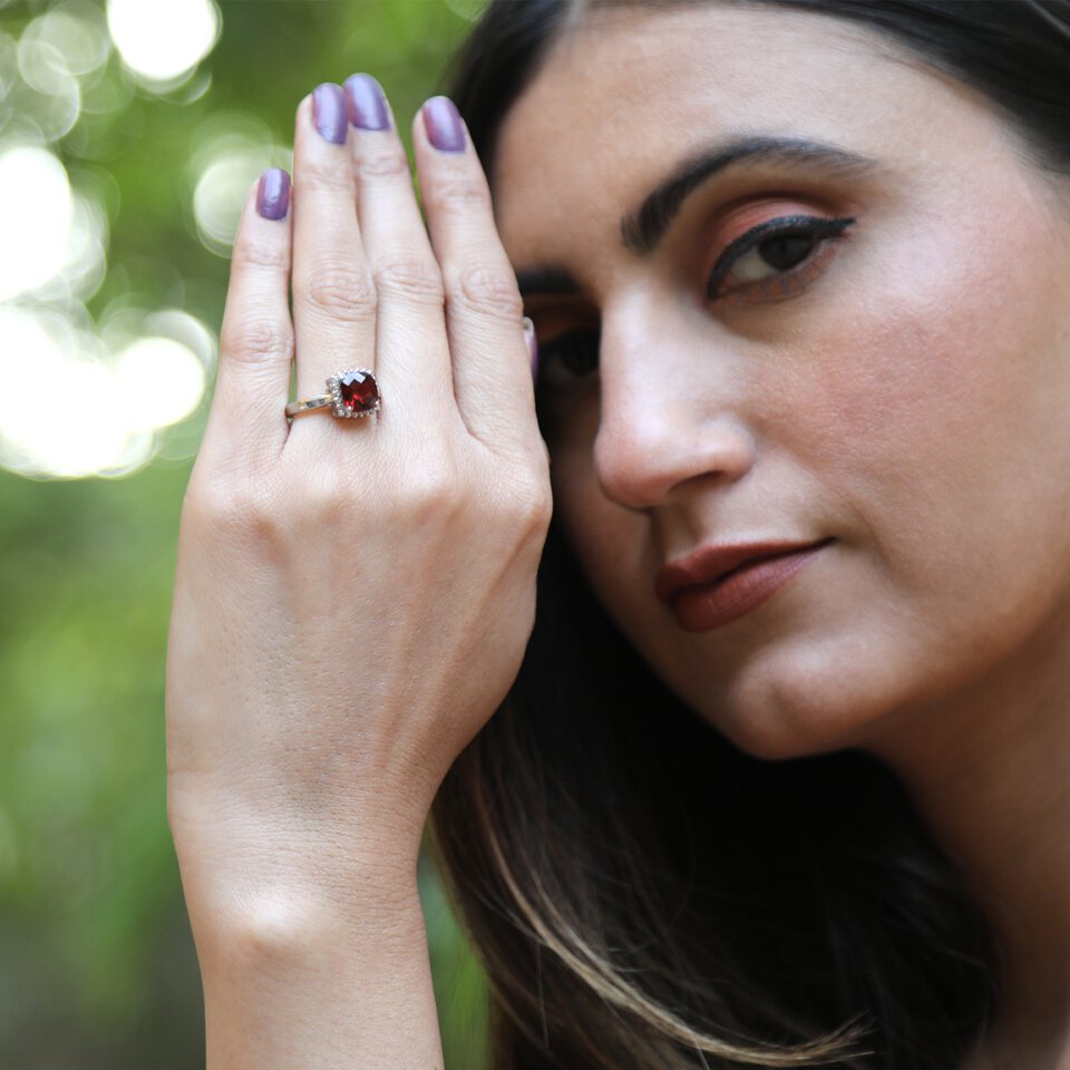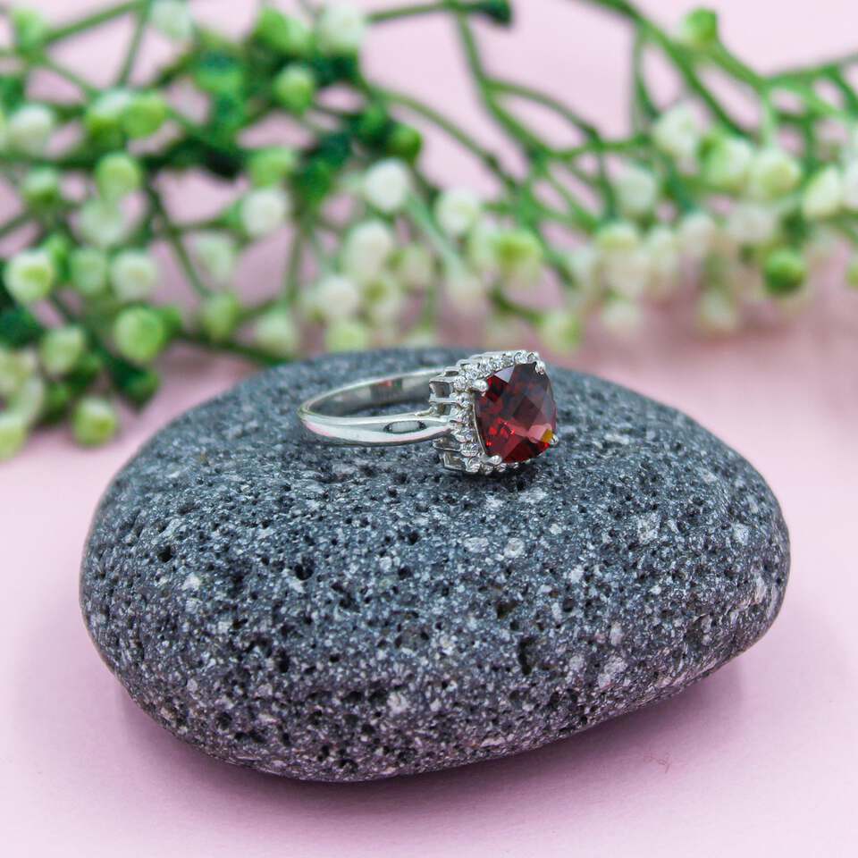 - Made from premium 925 sterling silver, this elegant halo-patterned ring is designed for women who appreciate sophistication. It features a beautiful garnet gemstone, the birthstone for January. Weighing just 4 grams, it offers a comfortable, luxurious feel, making it a perfect addition to any jewelry collection.